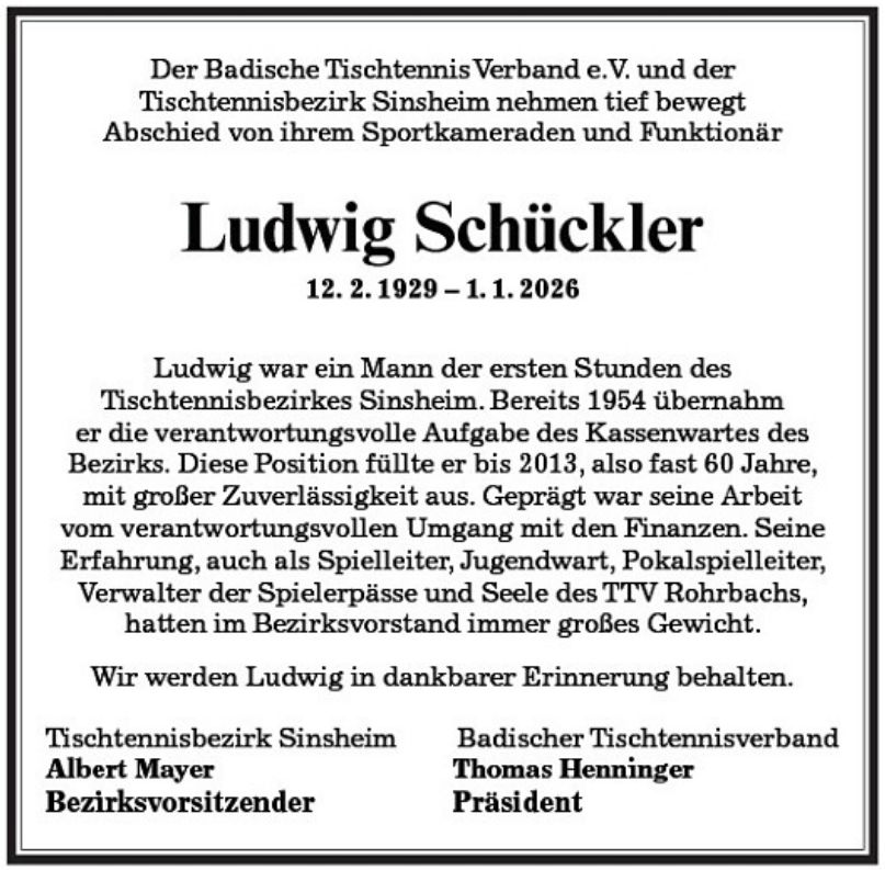 Wir freuen uns, Sie auf den Seiten des Tischtennis-Bezirks Sinsheim begrüßen zu dürfen! Hier erfahren Sie die aktuellen Spielergebnisse und Tabellen auf Bezirksebene. Außerdem bieten wir Ihnen News und Informationen rund um den Tischtennis-Bezirk Sinsheim. Für Fragen, Anregungen oder Kritik steht der Webmaster auch gerne zur Verfügung. Wir wünschen Ihnen einen angenehmen Aufenthalt. |